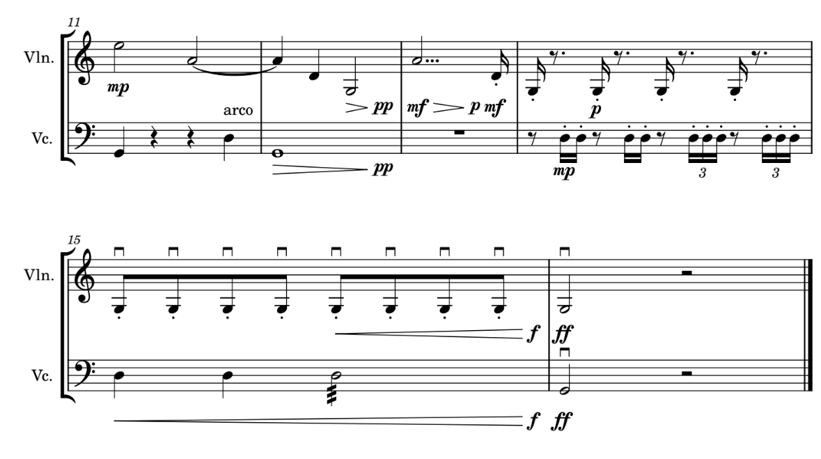 Obra compuestas para Violín y Violonchelo en la materia "Instrumento IV"